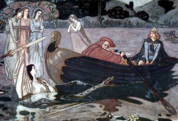 When Arthur woke and found that his sister had stolen his scabbard, he set off in pursuit. Before Arthur could catch her, she threw the scabbard into the lake. Then she changed herself and her attendants to look like rocks. Not able to find her, Arthur was forced to continue his journey to Camelot without his magical scabbard.