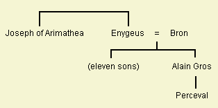 According to the Vulgate Cycle and Post-Vulgate Cycle, a new hero emerged as the hero of the Grail quest, displacing the original hero, Perceval. The family tree of Perceval is shown here, in which Perceval is no longer related to the Fisher King, like the early tradition.
