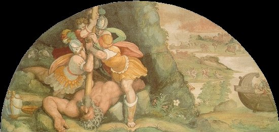 Knowing he would never be able to leave the cave if they killed the Cyclops, since the Ithacans were not strong enough to move the boulder that blocked their exit, Odysseus devised a plan. He and his men began sharpening a huge log of wood into a stake during Polyphemus’ absence the next day.