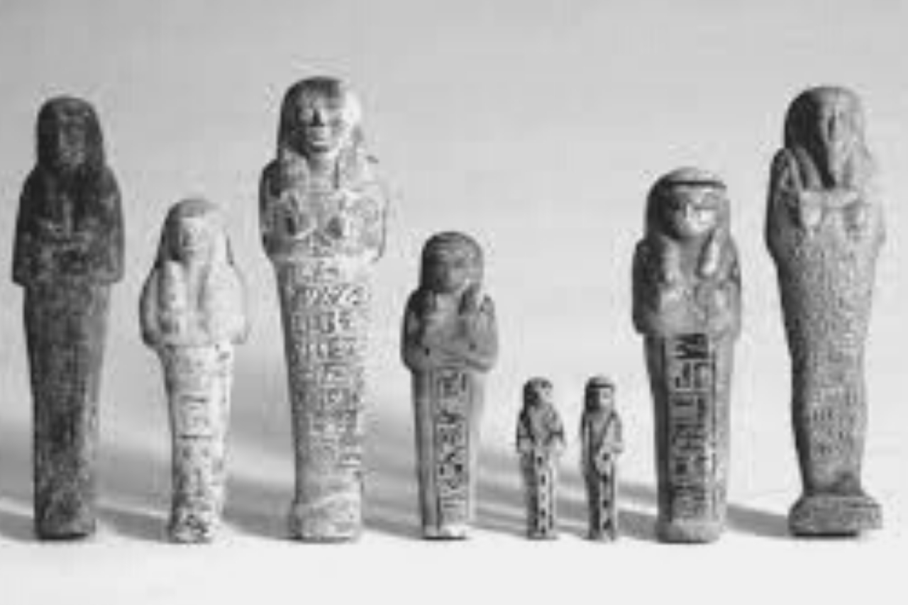New artifacts such as the first shabtis emerged at the end of the Middle Kingdom. Shabtis are funeral figures depicting men, women, or children that were placed in the graves of the departed to aid them in their journey to the afterlife.